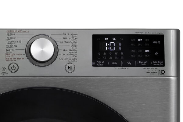 Máy giặt sấy LG Inverter 10 kg FV1410D4P lồng ngang - Bảng điều khiển Tiếng Việt
