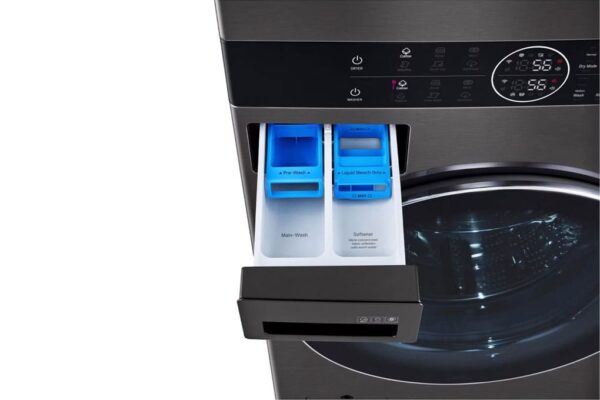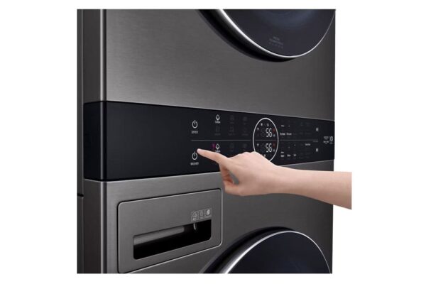 Thay vì 2 bảng điều khiển riêng biệt cho máy sấy và máy giặt, tháp giặt LG WT1410NHB được trang bị Bộ điều khiển trung tâm (Central Control Panel), bảng điều khiển tất cả trong một lần đầu xuất hiện, đem tới sự tiện lợi cho người sử dụng.