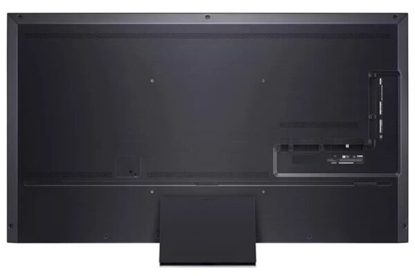 LG đã khắc phục nhược điểm thiết kế chân đế trên các thế hệ trước với độ cao lớn, phù hợp hầu hết các loại loa soundbar trên thị trường mà không lo bị che mất màn hình. Chân đế mới dạng chữ L giữ cho TV chắc chắn hơn so với kiểu chân đế bán nguyệt. Phần chân cũng có thiết kế giấu dây gọn đi phía trong với kiểu dáng tối giản nhưng chắc chắn nhờ tiết diện lớn. Mặt lưng cũng được thiết kế phẳng và có rãnh đi dây để tiện treo tường. LG 75QNED86SRA có thêm hỗ trợ bản lề độc quyền của LG giúp người dùng có thể treo Tivi sát tường hoàn toàn so với giá treo thông thường.