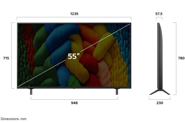 Smart Tivi LG 55NANO80ASA sở hữu màn hình 55 inch với thiết kế viền mỏng tinh tế, mang lại cảm giác liền mạch và tối ưu không gian hiển thị. Thiết kế nhỏ gọn này không chỉ phù hợp với phòng khách, phòng ngủ mà còn dễ dàng hòa hợp với mọi phong cách nội thất hiện đại.