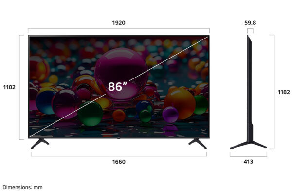 Smart Tivi LG 86UA8450PSA sở hữu màn hình 86 inch với thiết kế viền mỏng tinh tế, mang lại cảm giác liền mạch và tối ưu không gian hiển thị. Độ phân giải 4K Ultra HD (3840 x 2160) tái hiện hình ảnh sắc nét, từ cảnh thiên nhiên rực rỡ đến các chi tiết nhỏ trong phim hành động. Thiết kế nhỏ gọn này không chỉ phù hợp với phòng khách, phòng ngủ mà còn dễ dàng hòa hợp với mọi phong cách nội thất hiện đại.