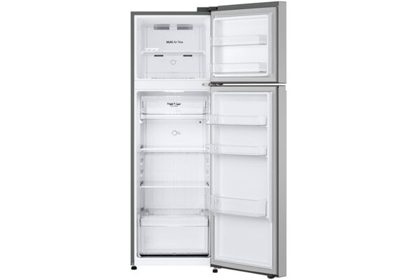 Tủ lạnh LG Inverter 266 lít LTB26SVM thiết kế tối giản theo xu hướng hiện đại, tay cầm chìm tinh tế. Cửa tủ kim loại độ bền cao, gam màu bạc thanh lịch, sang trọng, nổi bật dễ dàng phối hợp hài hòa với nhiều không gian nội thất. Tủ lạnh 2 cửa LG bố trí ngăn đá trên truyền thống, phù hợp với thói quen của đa số người dùng Việt Nam. Với dung tích 266 lít, tủ thích hợp sử dụng cho gia đình 2-4 thành viên, hoặc gia đình ít người hơn có nhu cầu lưu trữ dài ngày.