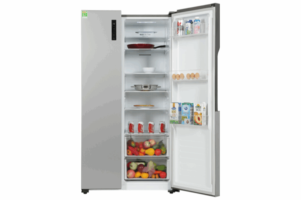 Kiểu dáng Side by Side kích thước lớn với 2 cánh mở 2 bên phù hợp với những không gian bếp rộng rãi, giúp bạn dễ dàng quan sát thực phẩm trong cả ngăn đông và ngăn mát cùng lúc, thuận tiện lấy được món ăn, thức uống yêu thích nhanh chóng.