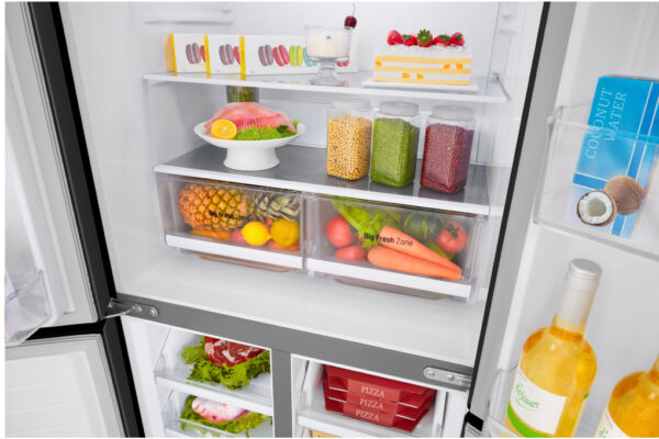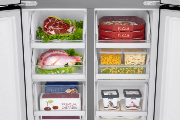 Tủ lạnh 4 cánh mở độc lập kiểu cửa Pháp cực kỳ tiện lợi với ngăn mát và ngăn đá rộng rãi, dễ dàng lưu trữ những thực phẩm có kích thước bề ngang lớn. Ngăn mát nằm phía trên giúp bạn dễ dàng quan sát và lấy thực phẩm thường dùng mà không cần cúi xuống tìm kiếm nhiều.